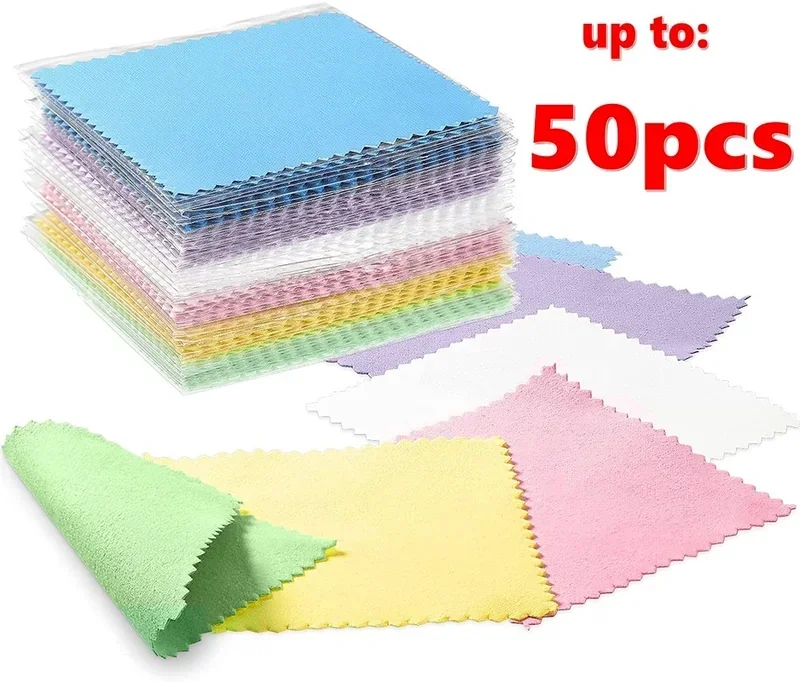 50/40/30/20/10pc Jewelry Cleaning Glasses Fabric Pink Polishing Cloth Sterling Silver Gold Platinum Small Polish Clothes 13x13cm