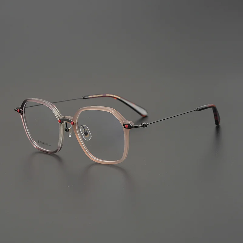 Japanese Retro Classes Polygon Personalized Custom Men Eyeglasses Frames Designer Titanium Acetate Myopia Black Sunglasses